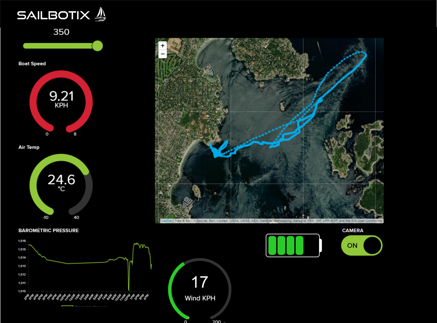 There is no limit to the number of viewers for the online dashboard. However, a separate secure login allows only select administrators to make changes to the boat's course. The dashboard features a tracker map and displays real-time data from onboard sensors. Dashboards are hosted at Sailbotix.com and can be either publicly viewable or private.