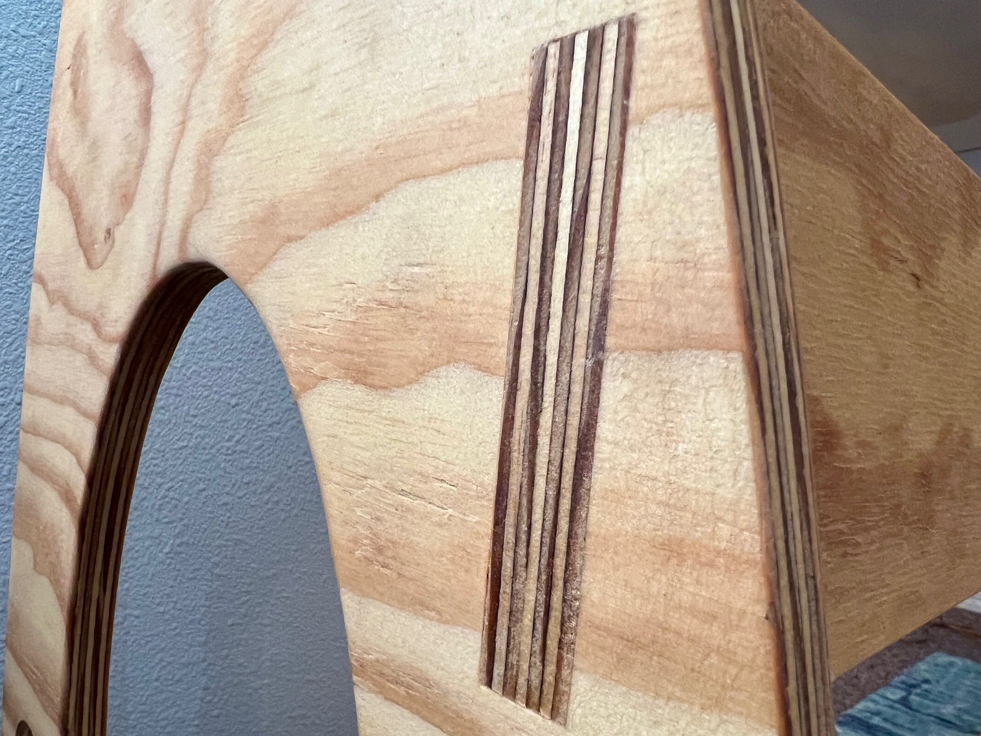 This stand is designed to support all three of our boat models and can be easily wheeled around like a wheelbarrow. It is constructed from CNC-cut New Zealand finished edge plywood, with plastic chocks that perfectly conform to the hull's shape for even weight distribution. The boat can be effortlessly moved around the office or classroom by holding the rear handles.